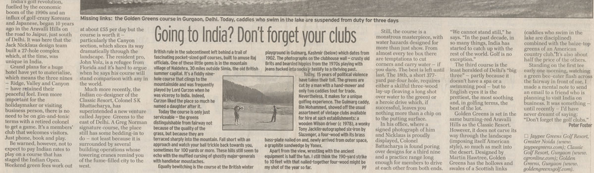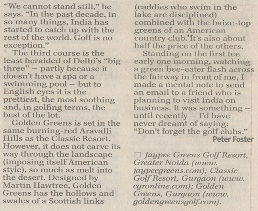 (Golden Greens is rated in 2nd position as best Golf Course in India)